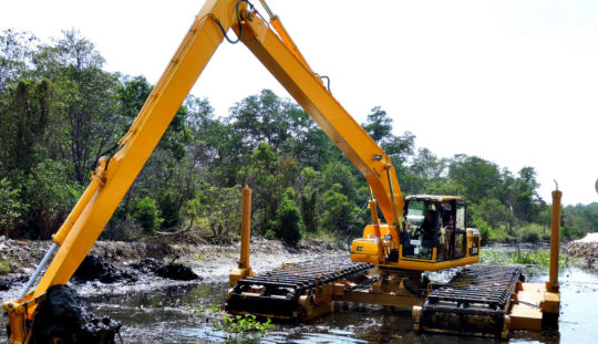An amphibious excavator/marsh buggy is specifically designed to maneuver in marshy, swampy area and soft terrain, and can also float on water as an added safety feature. It is completely self-propelled and can virtually access all terrains. However, it requires minimum transportation and hoisting equipment support, thanks to EIK's development of the patented ‘multi-synchronous direct drive‘ system, a pivotal technology that positioned it at the forefront of amphibious excavator design. EIK is now the largest full-range amphibious excavator manufacturer by volume in South East Asia with worldwide recognition for quality and superior performance.