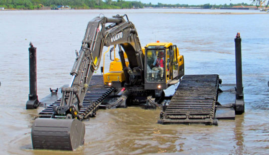 An amphibious excavator/marsh buggy is specifically designed to maneuver in marshy, swampy area and soft terrain, and can also float on water as an added safety feature. It is completely self-propelled and can virtually access all terrains. However, it requires minimum transportation and hoisting equipment support, thanks to EIK's development of the patented ‘multi-synchronous direct drive‘ system, a pivotal technology that positioned it at the forefront of amphibious excavator design. EIK is now the largest full-range amphibious excavator manufacturer by volume in South East Asia with worldwide recognition for quality and superior performance.