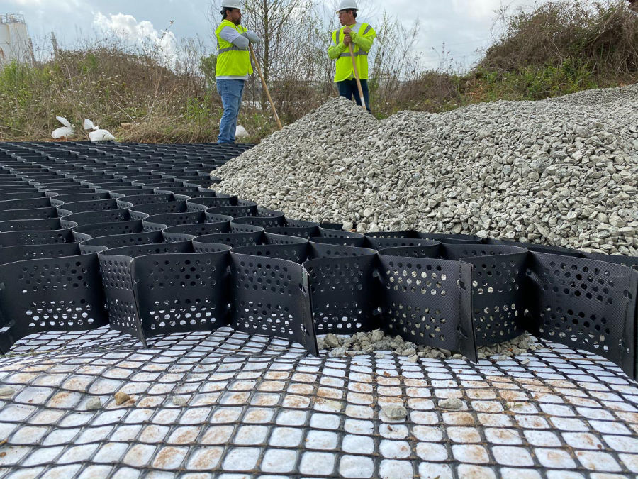 Significantly reduced cost with the use of on-site materials, decreased structural layer and a faster installation using the industry’s largest single size panels. This enables quicker installation compared to other geocell products. Custom manufacturing and on-site assistance also available from our GeoCell experts.